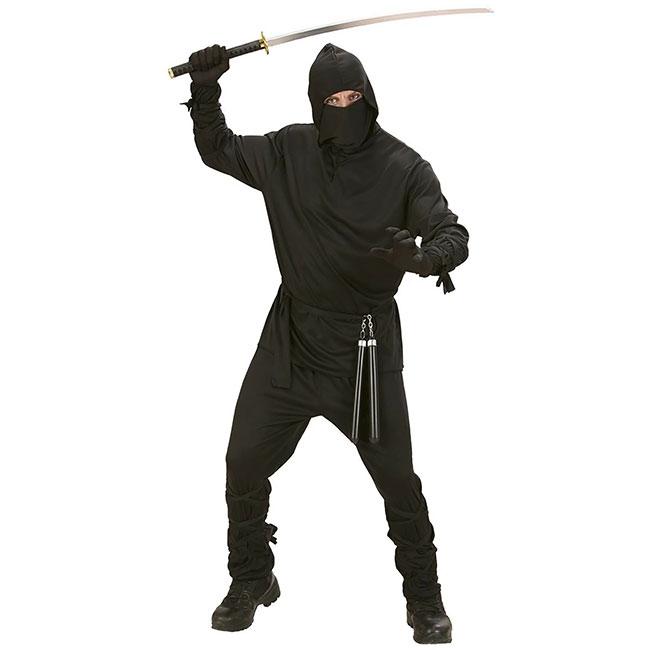 Mit diesem Kostüm ist jeder Mann wie ein mutiger und tapferer Ninja bekleidet. Das Kostüm wird im 5-teiligen Set geliefert und besteht aus einem Kasack mit Kapuze, einer Hose, einem Gürtel, einer Maske, und Schnüre für Arme und Beine. Das Kostüm ist Schwarz und aus 100% Polyester gefertigt. Es ist in den Größen M und L erhältlich.