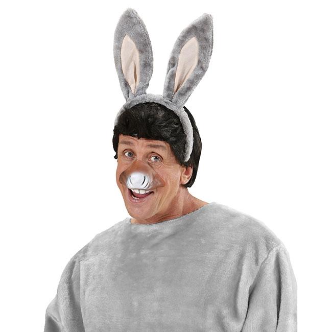 Dieses Kostüm-Set enthält 2 Teile: einen Haarreif mit Eselsohren und eine Nase, die einen Eselsschnauze imitiert. Der Haarreif ist natürlich in der Farbe Grau gehalten. Die angebrachten Ohren sehen aus wie klassische Eselsohren. Das Nasenteil sieht aus wie eine Eselsnase mit der oberen Zahnreihe des Esels. Getragen erweckt sie so den Anschein, als hätten Sie eine Eselschnauze.