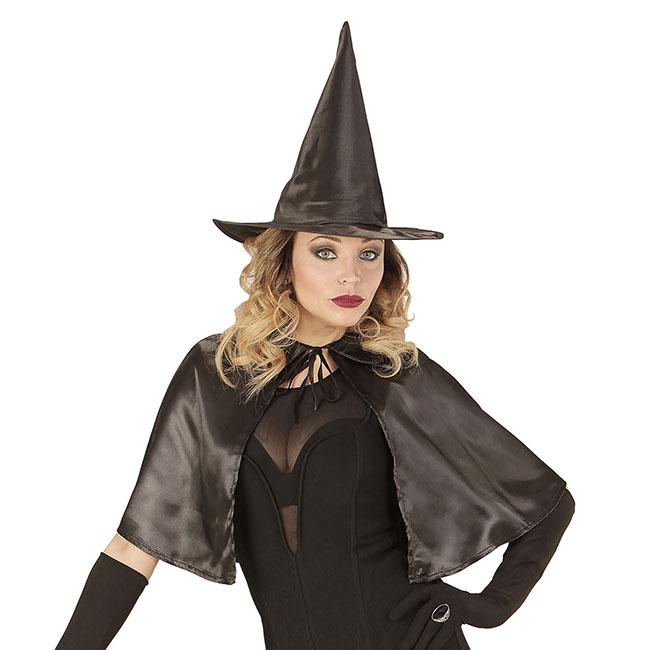 Das Kostüm-Set "Stilvolle Hexe" wird in einer Einheitsgröße für Erwachsene geliefert. Die Länge des schwarzen Capes beträgt (mit Kragen gemessen) ca. 50 cm. Der Hut hat einen Durchmesser von ca. 36 cm. Bitte beachten Sie, dass lediglich der Hut und das Cape im Lieferumfang enthalten sind. Alle anderen Artikel, die Sie der Abbildung entnehmen können, werden NICHT geliefert.