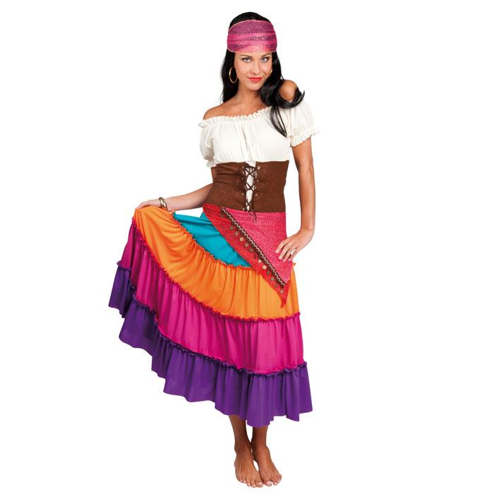Dieses hochwertige Kostüm ist ein Muss für Karneval und Fasching! Als Zigeunerin sieht man immer super sexy aus, man wird sich vor Komplimenten kaum retten können. Das Kostüm wird 3-teilig geliefert. Es besteht aus einem langen Kleid, einem Haarband und einem Hüfttuch. Das hübsche Kleid besteht aus einer braun-weißen Bluse und einem Rock in vielen bunten Farben. Der Stoff fühlt sich sehr angenehm auf der Haut an. Aufwendige Verarbeitung, top Kollektion!