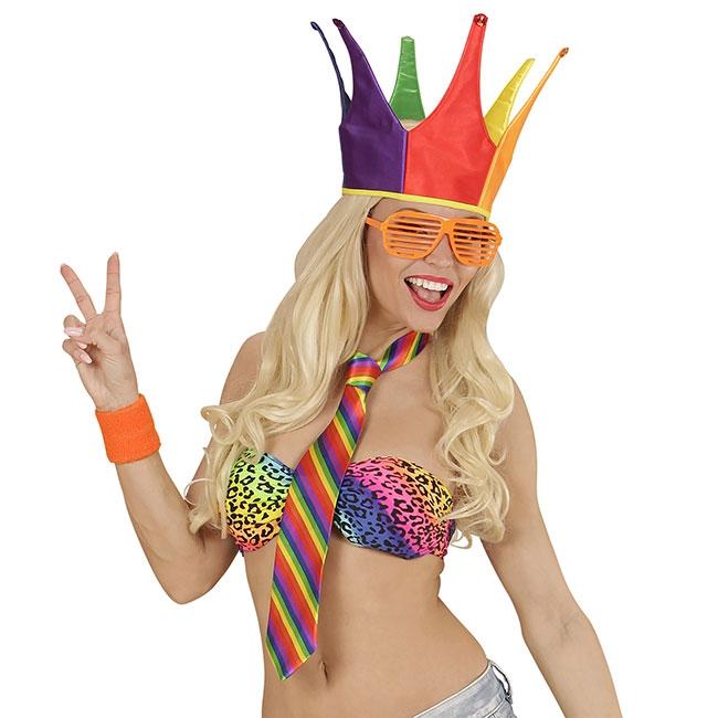 Die Krawatte hat eine Breite von ca. 6 cm. Sie in einer Regenbogen-Optik designet und verbreitet einfach gute Laune!