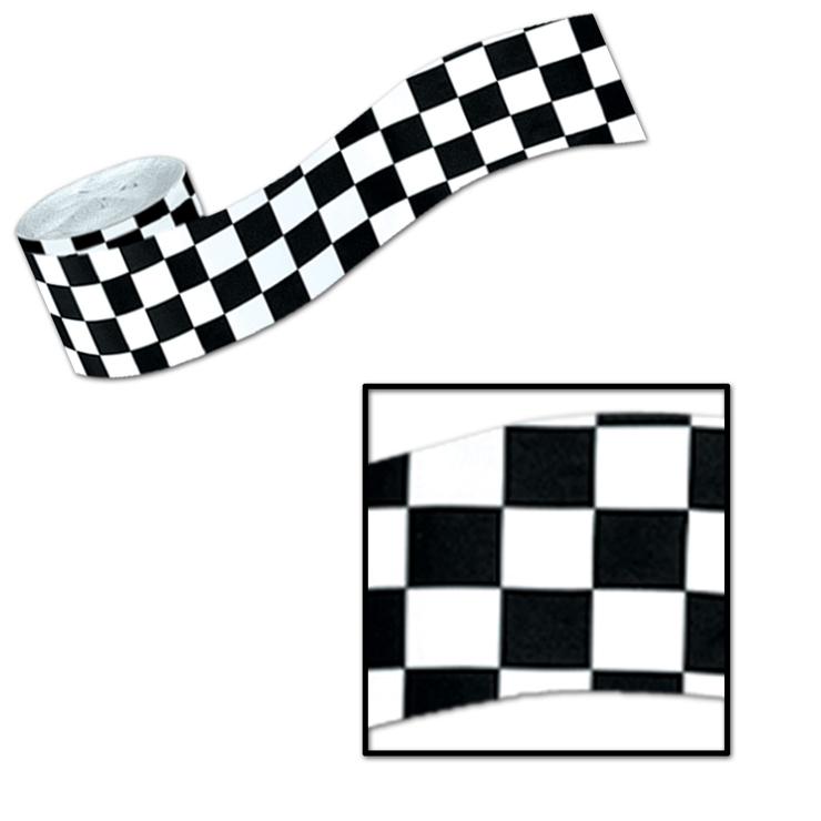 Mit dem Kreppband Zielflagge können Sie Ihre Party-Location im Stil des Motorsports vielseitig dekorieren. Ob als Tischläufer, als Wanddeko oder als Absperrband - das Kreppband ist überall einsetzbar und durch seine leichte Dehnbarkeit auch sehr flexibel. Das Kreppband ist ca. 9 m lang und ca. 6,4 cm hoch. und hat das typische schwarz-weiß karierte Muster einer Zielflagge.