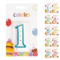 Die Kuchenkerze in Zahlenform besteht aus Wachs und stellt eine Zahl dar. Verfügbar sind die Zahlen von 0 bis 9. Die Zahl ist in einer Farbe umrandet, mittig befinden sich unterschiedlich farbige Punkte. Die Kerzen können selbstverständlich kombiniert werden, somit kann jedes Alter auf dem Kuchen dargestellt werden.