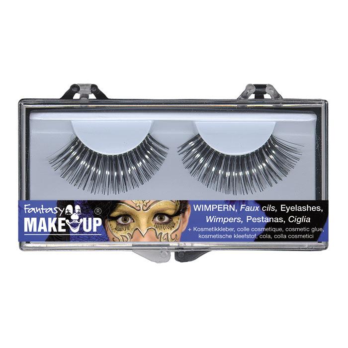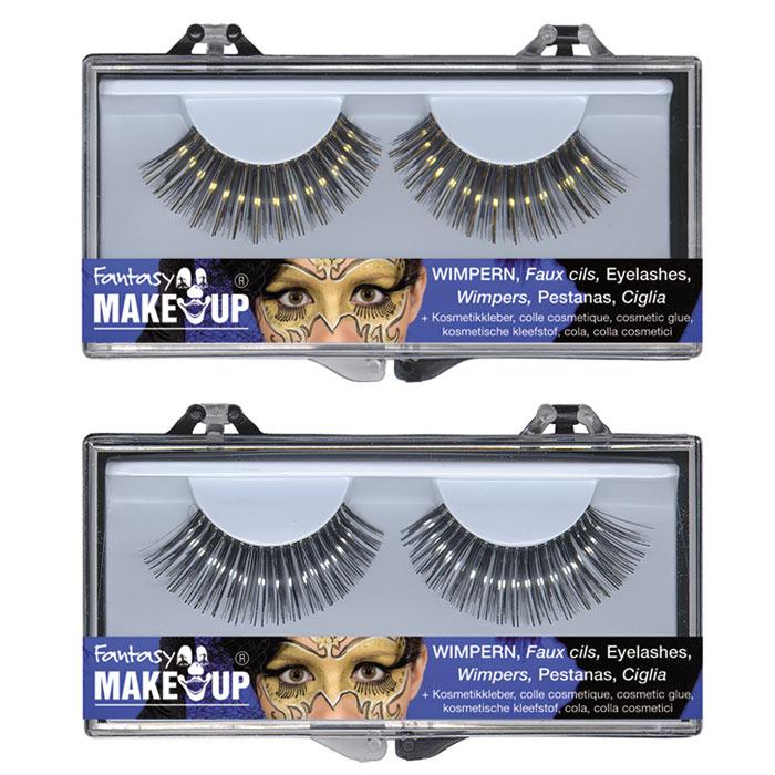 Mehr Info: Die künstlichen Wimpern sind schwarz mit eingearbeiteten silbernen oder goldenen Akzenten. Wimpernkleber gehört zum Lieferumfang.