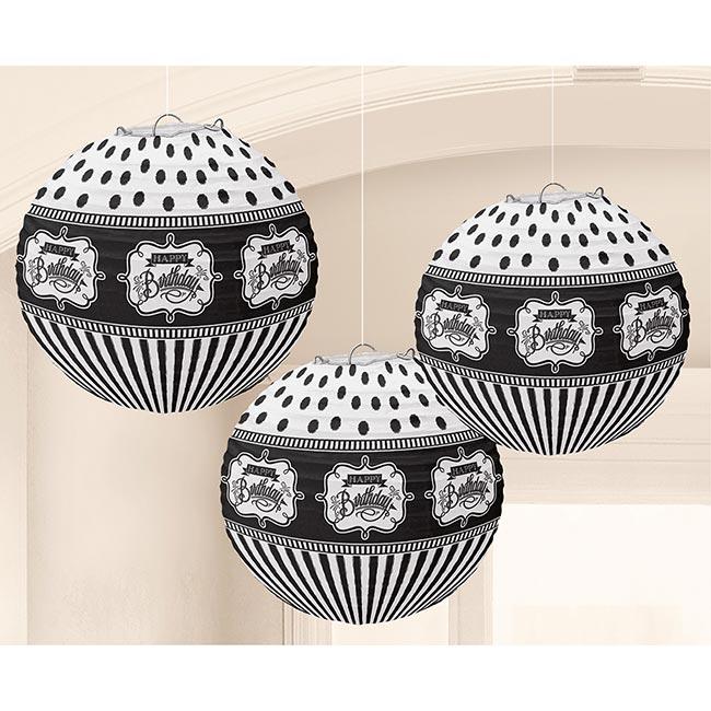 Artikel: Lampions "Schwarz-weißer Kreidespaß" 3er Pack