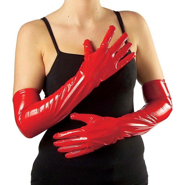 Artikel: Lange Handschuhe "Lack-Optik" 56 cm-rot