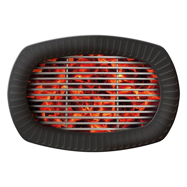 Die länglichen Pappteller "BBQ Time" werden im 6er Pack geliefert. Sie sind schwarz umrandet und zeigen in der Mitte glühende Kohle unter einem Grillrost. Die Länge beträgt ca. 24 cam, die Breite misst ca. 17 cm.