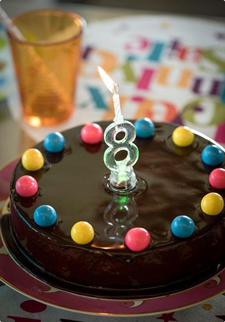 Mehr Info: Ein Geburtstagskuchen ohne Kerze? Unvorstellbar! Wenn diese dann aber noch in herrlichen Farben erstrahlt, umso besser.