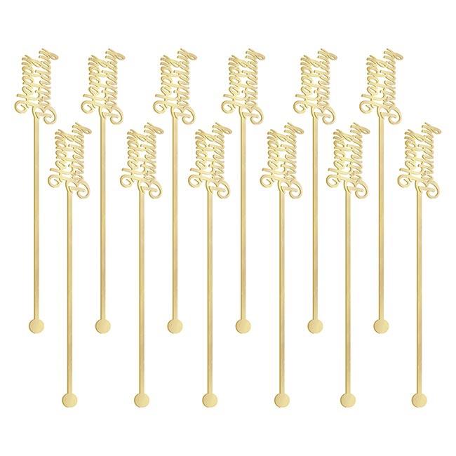 Die Longdrink-Sticks "Confetti Fun" bestehen aus Kunststoff und werden im 12er Pack geliefert. Sie sind golden und ca. 19 cm lang. Das obere Ende ziert der Schriftzug „Happy Birthday“. Damit stoßen Sie stilvoll mit Ihren Gästen an. Cheers!