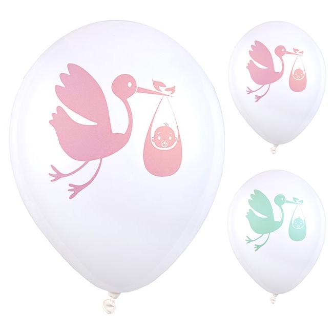 Die Luftballons "Edle Babyparty" werden im 8er Pack geliefert und bestehen aus Naturkautschuklatex. Je nach Auswahl kann zwischen den Farben Rosa oder Mint-Grün gewählt werden. Jeder Ballon hat als Motiv einen Storch der ein Bündel mit einem Baby transportiert. Die Ballons sind weiß, das Motiv hat Ihre gewählte Wunschfarbe.