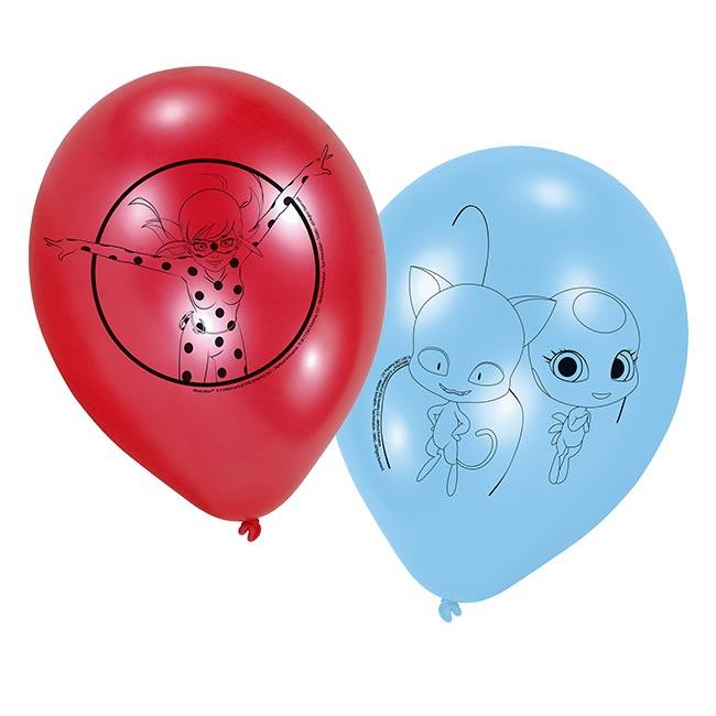 Die Luftballons "Miraculous" werden im 6er Pack geliefert und bestehen aus Naturkautschuklatex. Die Ballons haben die Farben Rot, Blau und Schwarz. Die roten und schwarzen Ballons sind mit "Ladybug" bedruckt und die blauen Ballons mit "Tikki und Plagg". Die Ballons haben im aufgeblasenen Zustand einen Durchmesser von ca. 22,8 cm.