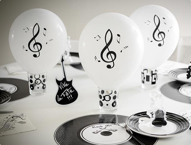 Die Luftballons "Ohrwurm" werden im 8er Pack geliefert und bestehen aus Latex. Aufgeblasen haben sie einen Durchmesser von ca. 23 cm. Die weißen Ballons sind mit schwarzen Musiknoten und Notenschlüsseln bedruckt.