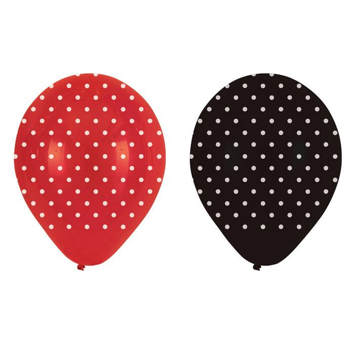 Artikel: Luftballons rot und schwarz gepunktet 6er Pack
