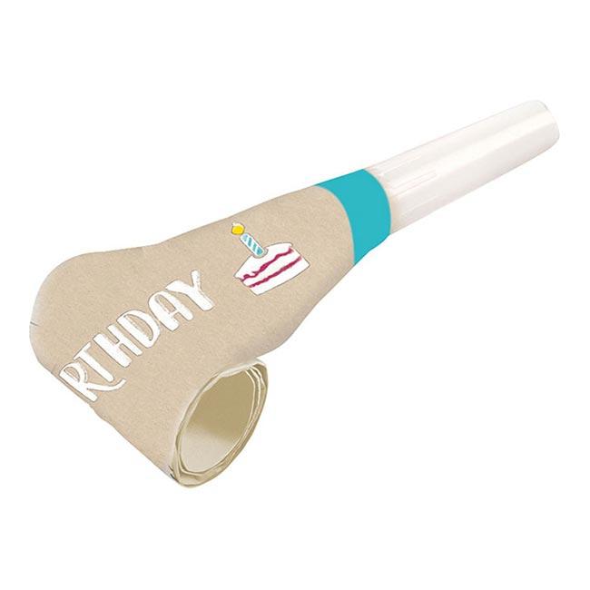 Die Luftrüssel aus der Serie "My Birthday Party" werden im 8er Pack geliefert. Der Luftrüssel selbst besteht aus bedrucktem Papier, während das Mundstück hingegen aus weißem Kunststoff gefertigt ist. Ausgebreitet erreichen die Luftrüssel, inklusive Mundstück, eine Länge von ca. 33 cm. Die Luftrüssel sind komplett in Beige gehalten. Anfang und Ende sind jeweils mit einem türkisen Streifen abgesetzt. Wird der Luftrüssel aufgepustet erkennt man den Satz „Happy Birthday“ auf der Oberseite sowie ein Stück Geburtstagstorte samt Kerze.