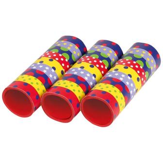 Die Luftschlangen "Party-Alarm" sind mit Punkten und Sternchen bedruckt und erstrahlen in den Farben rot, lila, gelb, grün und weiß. Sie erhalten die Luftschlangen aus Papier im 3er Pack. Wenn Sie die Luftschlangen trennen, erhalten Sie insgesamt 27 kleine Röllchen.