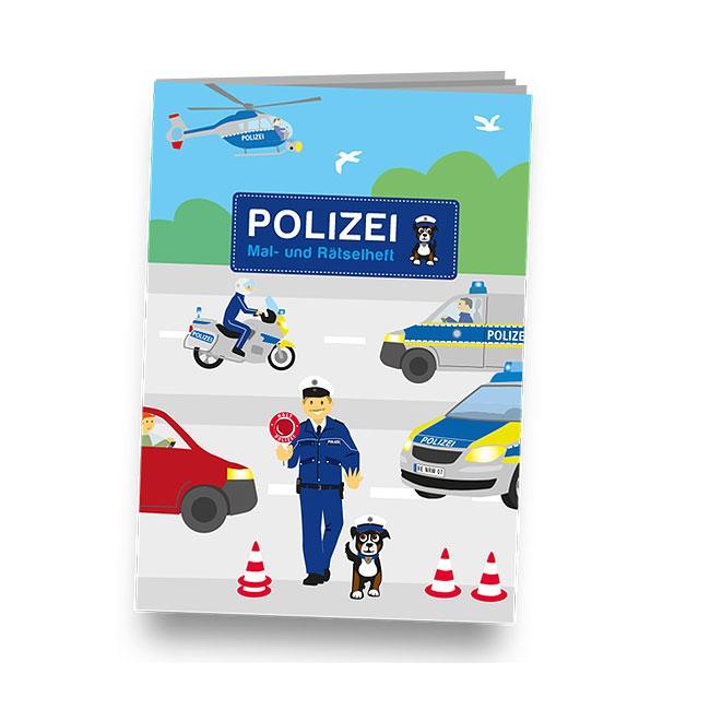 Das Mal- und Rätselheft "Polizei" umfasst insgesamt 8 Seiten. Diese sind gespickt mit lustigen Bildern zum Ausmalen und diversen kleinen Rätseln. Die Maße des Heftes betragen ca. 10,5 x 15 cm und es besteht aus Pappe und Papier.