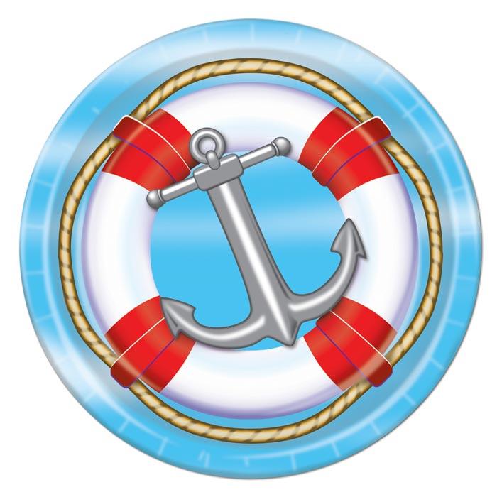 Maritime Pappteller "Anker und Rettungsring" 8er Pack