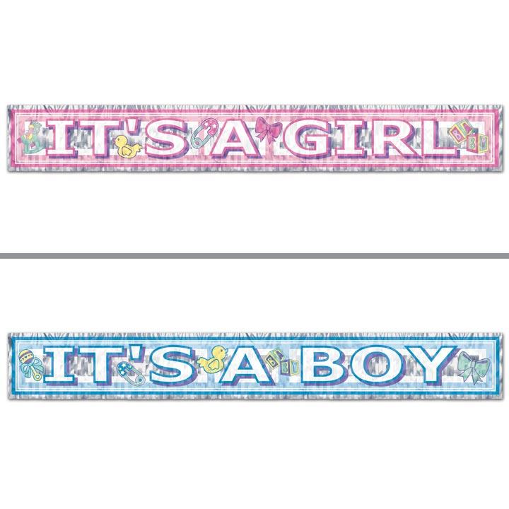 What a moment! Diesen garantiert unvergesslichen Moment und bewegenden Abschnitt in Ihrem Leben sollten Sie unbedingt feiern und da liegt es natürlich nahe, eine schöne Baby-Party zu veranstalten. Für das "Babypinkeln" darf die passende, niedliche Wanddeko keinesfalls fehlen: Da haben Sie mit dem Metallic Flatter-Banner "Baby-Glück" genau die richtige Wahl getroffen. Die Deko gibt es entweder in Hellblau, mit dem Aufdruck "It's a Boy" für den kleinen Jungen, oder in Rosa, mit der Aufschrift "It's a Girl" für das süße Mädchen.
