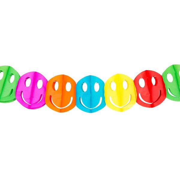 Mit dieser zierlichen, schönen und preisgünstigen Mini-Girlande können Sie eine noch nicht dekorierte Ecke mit etwas Farbe befüllen. Die Girlande hat eine Länge von ca. 2 Meter und eine Höhe von ca. 10 cm. Sie besteht aus aneinandergereihten Smilies in verschiedenen Farben. Die Girlande ist mit einer Schnur versehen, sodass sie ganz leicht angebracht werden kann. Die Smilies machen einfach gute Laune und passen zu jeder Party!