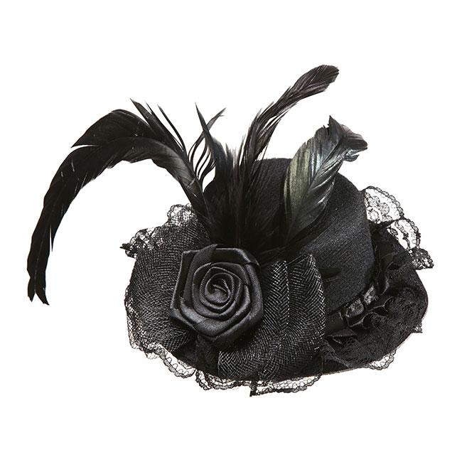 Mini-Hut "Elegantes Schwarz" mit Federn und Spitze