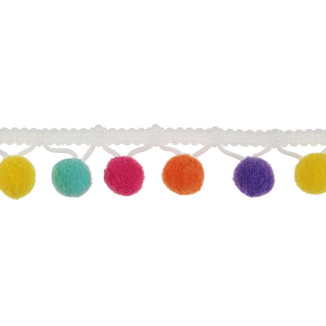 Die Mini Pom-Pom Girlande "Buntes Mexiko" besteht aus Polyester und ist ca. 2 m lang. An dem weißen Band sind kleine Pom-Poms (ca. 1,5 cm) in acht verschiedenen Farben befestigt.