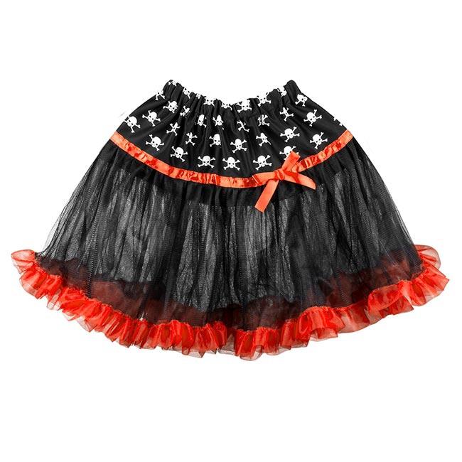 Der Mini-Rock "Fesche Piratin" wird in der Herstellergröße M geliefert, was einer Länge vom Bund zum Saum von ca. 32 cm entspricht. Der Rock ist mit einem breiten, sehr elastischen Bund versehen. Die oberste blickdichte Lage ist mit weißen Totenköpfen bedruckt und dehnbar, die Lage darunter ist einfarbig Schwarz und ebenfalls elastisch. Der Saum des Rocks sorgt für Volumen. Auf der Vorderseite zieren ein rotes Satinband, sowie eine rote Satinschleife das schicke Kleidungsstück. Im Lieferumfang ist ausschließlich der Rock enthalten. Andere abgebildete Artikel werden NICHT mitgeliefert.