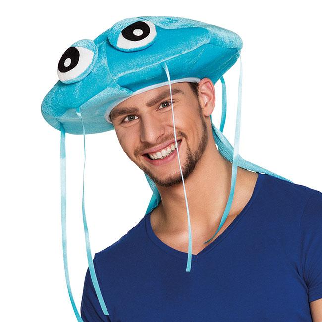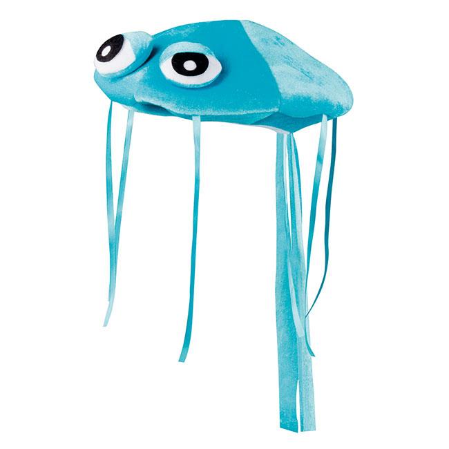 Die Mütze "Lustige Qualle" hat einen Durchmesser von ca. 34 cm. Der Innendurchmesser der Kopföffnung liegt bei ca. 17 cm. Die Mütze ist rundherum mit ca. 34 cm langen Bändern versehen, die die Tentakel der Qualle darstellen. An der Rückseite sind noch 4, ca. 49 cm lange, breite Bänder angebracht. Einen besonders niedlichen Look bekommt die Mütze durch die zwei großen Augen auf der Oberseite.