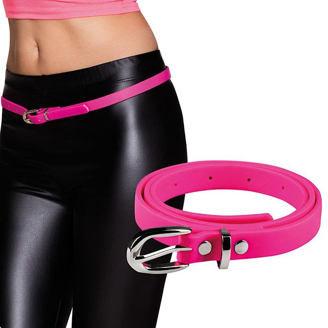 Auf in die 80er! Dieser tolle pinke Kunststoff Gürtel ist perfekt für die nächste Party in die wilden 80er. Der Gürtel ist etwa ca. 115 cm lang und ca. 1,5 cm breit. Mit diesem knalligen Accessoire perfektionieren Sie jedes 80er Jahre Outfit!