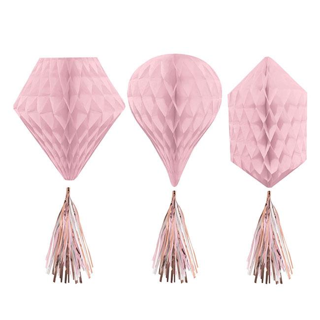 Papierwabe mit Fransenpuschel "Rosige Party" 3er Pack