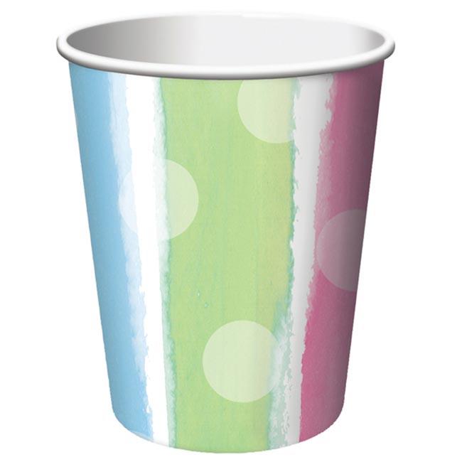Diese Pappbecher gehören in die süße Serie der Baby Deko! Die Pappbecher sind mit zarten Farben dekoriert, welche perfekt in die Welt des Babys passt. Sie werden im 8er Pack geliefert und haben eine Höhe von ca. 9 cm sowie ein Fassungsvermögen von ca. 266 ml. Die Becher sind passend zu weiteren Dekoartikeln aus unserer Baby Kategorie gefertigt worden.