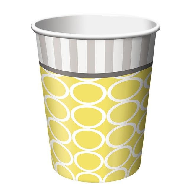 Ja, diese Pappbecher passen bestens zu anderen Deko-Artikeln aus unserer Baby-Abteilung. Die Pappbecher werden im 8er Pack geliefert, haben eine Höhe von ca. 9 cm sowie ein Fassungsvermögen von ca. 266 ml. Der untere Teil der Becher ist gelb und mit vielen weißen Kreisen bedruckt. Der obere Teil ist in verschiedenen grau Tönen gestreift. Eine Baby Party kann vor oder nach der Geburt gefeiert werden - natürlich auch beides! Man kann es kaum erwarten, wann ist es endlich so weit?