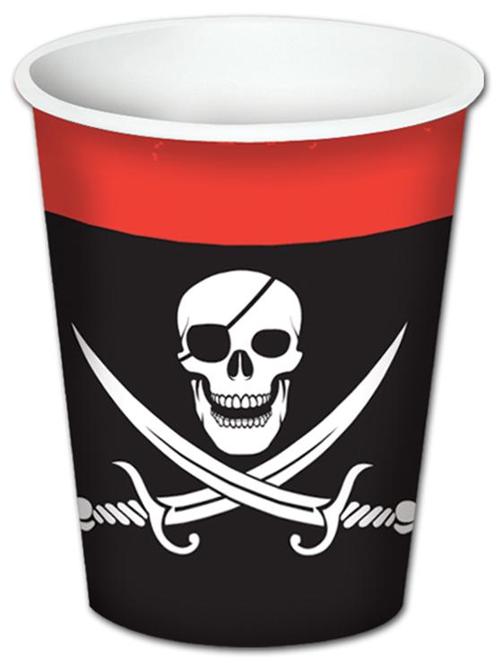 Mehr Info: Die Becher haben ein Fassungsvermögen von ca. 260 ml und sind aus stabiler Pappe. Passend zu den Bechern bieten wir auch Pappteller an. So sind Sie auch mit Ihrem kompletten Partygedeck bestens für die Piraten-Mottoparty gerüstet.