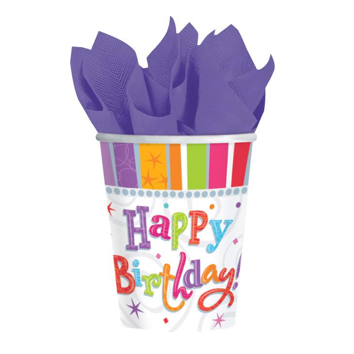 Artikel: Pappbecher "Strahlender Geburtstag" 8er Pack