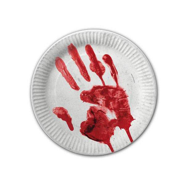 Pappteller "Blutige Handabdrücke" 10er Pack