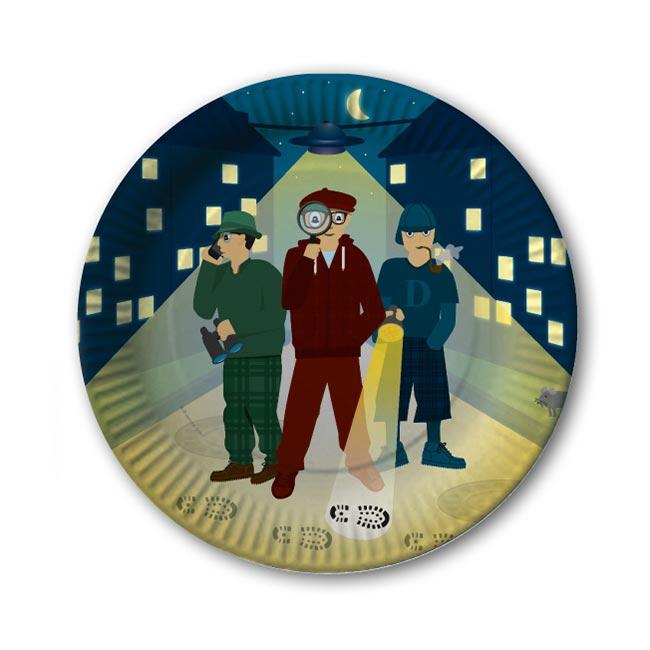 Mehr Info: Die Pappteller sind einseitig mit 3 Detektiven, Fußspuren und beleuchteten Fenster bei Nacht bedruckt. Die Teller werden im 8er Pack geliefert. Der Durchmesser der Pappteller beträgt ca. 23 cm.