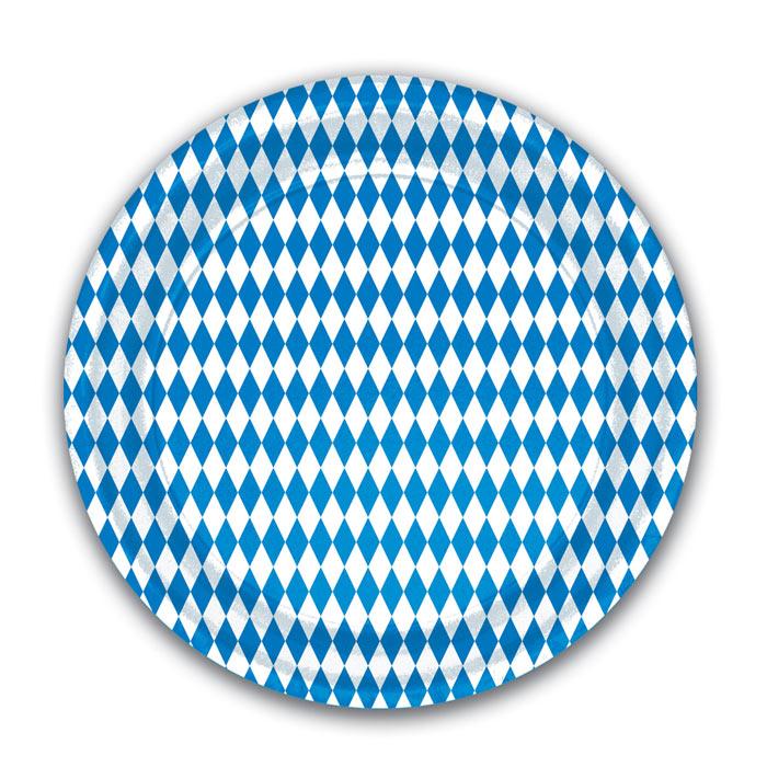 Die Pappteller Bayrische Raute sind robuste, blau-weiße Pappteller, die sich sehr gut für Ihr nächstes Oktoberfest eignen! Die Teller haben einen Durchmesser von je ca. 23 cm und sind mit dem typischen, bayrische Rautenmuster bedruckt, welches Sie beim Oktoberfest im Überfluss sehen!