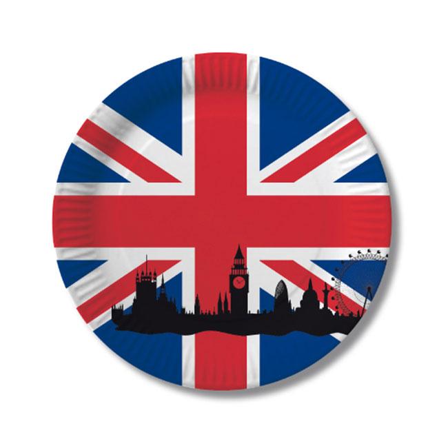 Go England, Go! Ob zum Fußball wie einer Weltmeisterschaft oder Europameisterschaft oder als echter England Fan mit seinen tollen Städten und Landschaften: diese Pappteller passen super zu einer England Mottoparty! Die Teller sind mit dem Motiv der englischen Flagge bedruckt und in Schwarz ist London eingezeichnet. Die Teller werden im 10er Pack geliefert und haben einen Durchmesser von ca. 23 cm.