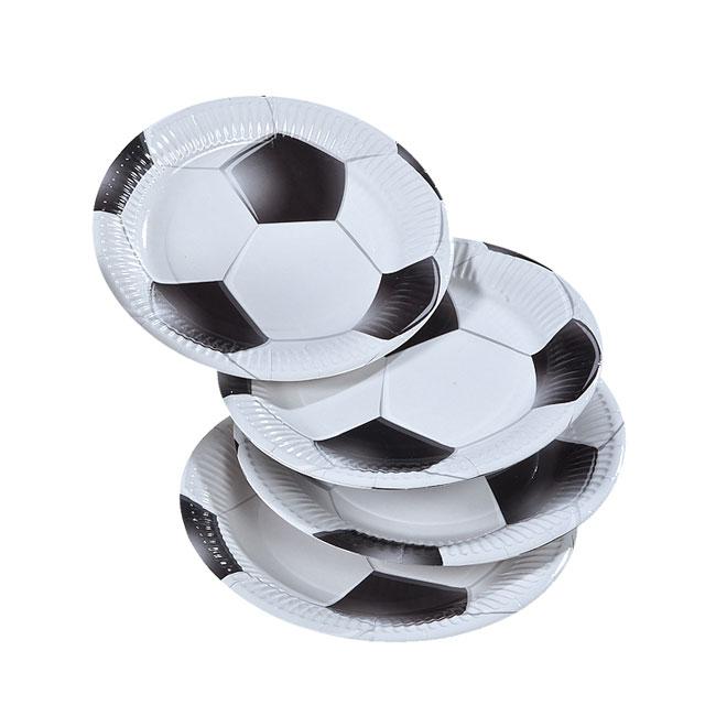 Wenn Sie ein Fußball Fan sind, dann sollten Sie schleunigst eine Fußball Party planen! Und es gibt ja immer etwas zu feiern, sei es eine Weltmeisterschaft, eine Europameisterschaft, die Bundesliga oder ein anderer Wettbewerb bei dem der schwarz-weiße Ball über das Spielfeld rollt. Damit Sie eine unvergessliche Party planen können, gibt es hier im Onlineshop die passende Partydeko. Diese Pappteller werden im 8er Pack zu Ihnen nach Hause geliefert. Sie haben einen Durchmesser von ca. 23 cm und sind wie ein Fußball bedruckt.