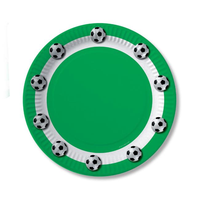 Mit diesen Papptellern kann die Fußball Weltmeisterschaft oder Europameisterschaft kommen! Denn die Pappteller sind grün und am Rand mit vielen kleinen Fußbällen bedruckt. Die Pappteller werden im 10er Pack geliefert und haben einen Durchmesser von ca. 23 cm. Natürlich können die Pappteller auch für andere Fußball Partys benutzt werden. Da freuen sich Jungs und Männer und wahrscheinlich auch einige Frauen!