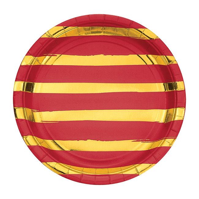 Pappteller "Goldene Streifen" 8er Pack-rot