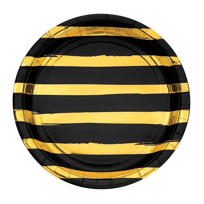 Pappteller "Goldene Streifen" 8er Pack-schwarz