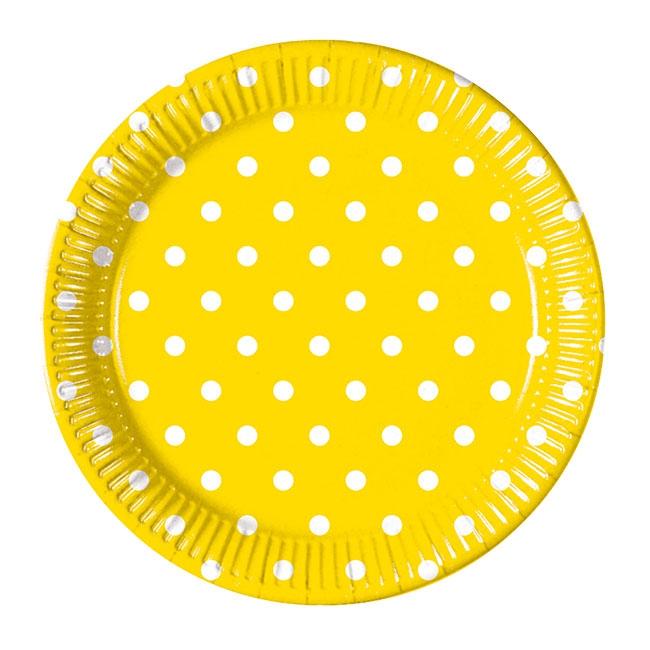 Die Pappteller "Happy Day" werden im 8er Pack geliefert. Sie weisen einen Durchmesser von ca. 22 cm auf und sind in den Farben Grün, Orange und Gelb erhältlich. Alle Teller sind weiß gepunktet.