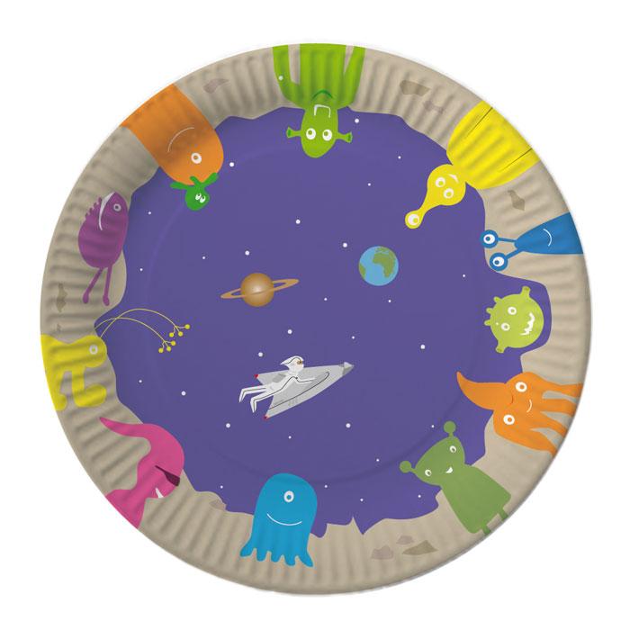 Was befindet sich wohl alles im Weltraum? Gibt es noch eine zweite Erde, oder sind wir die einzigen Lebewesen im Universum? Diese Fragen hat Ihnen bestimmt schon einmal Ihr Kind gestellt. Und da man nicht einfach mal so ins Universum fliegen kann, kann man ja eine Party mit dem Thema "Weltraum" organisieren. Diese Pappteller werden im 8er Pack geliefert und haben einen Durchmesser von ca. 23 cm. Das Motiv sind Außerirdische, die durch die Galaxie fliegen.