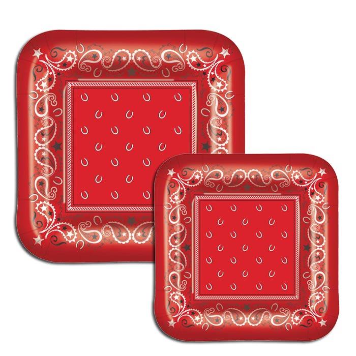 Ob als kleiner Snack-Teller oder als großer Teller fürs Barbecue - diese Pappteller sind perfekt für Ihre Leckereien im Western-Style. Die roten Teller aus robuster Pappe sind mit dem bekannten schwarz-weißen Bandana-Muster bedruckt, das zusätzlich mit typischen Cowboy-Symbolen wie Hufeisen und Sheriffsternen verziert ist. Die Pappteller werden in zwei Größen angeboten: als kleine Snack-Teller mit einer Größe von ca. 18 x 18 cm oder als große Pappteller mit einer Größe von ca. 23 x 23 cm.