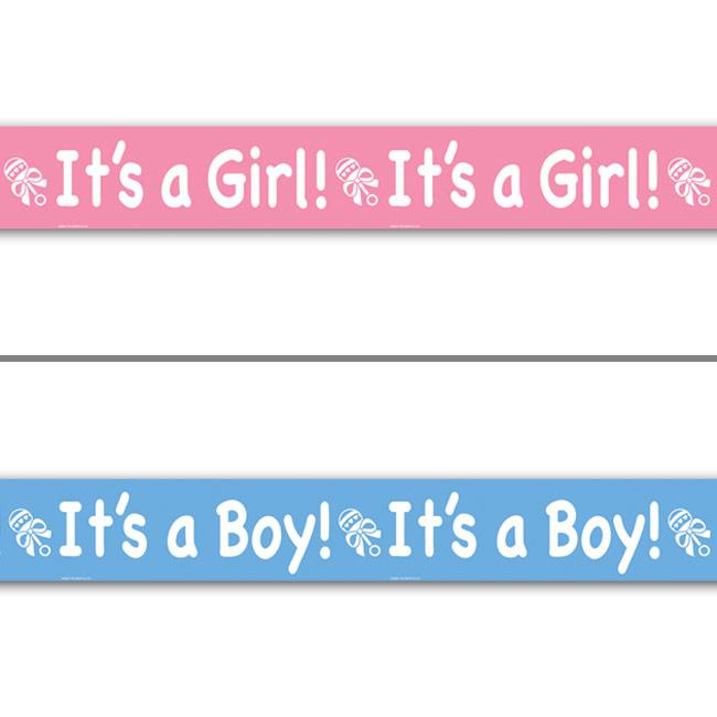 Mehr Info: Das Party-Absperrband "It's a boy" bzw. "It's a girl" hat eine Länge von ca. 6 m und ist etwa 7,5 cm hoch.