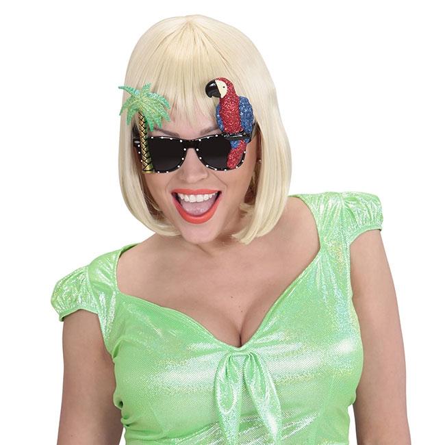 Mit dieser Brille holt man sich den Sommer zurück! Die Brille ist aus Kunststoff hergestellt und mit einem Papagei und einer üppigen Palme bestückt. Die Brille selbst ist in schwarz gehalten und mit weißen Punkten bedruckt. Wie wäre es, wenn man diese Brille im Partner-Look trägt, um gleich doppelt gute Laune zu verbreiten?