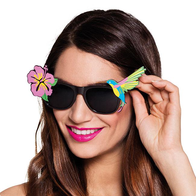 Die Partybrille "Paradies" bringt Ihnen richtiges Sommer-Feeling. Neben der coolen Optik, hat die Sonnenbrille auch noch einen praktischen Nutzen, sie schützt Ihre Augen auch vor Sonneneinstrahlung der Kategorie 3. Sie ist also auch für den normalen Gebrauch, außer zum Autofahren, geeignet. Brille sowie Gläser sind komplett aus Kunststoff gefertigt. Zusätzlich ist die Brille mit einem sommerlichen Hibiskus und einem Kolibri verziert. Es handelt sich bei der Brille um eine Einheitsgröße für Erwachsene.