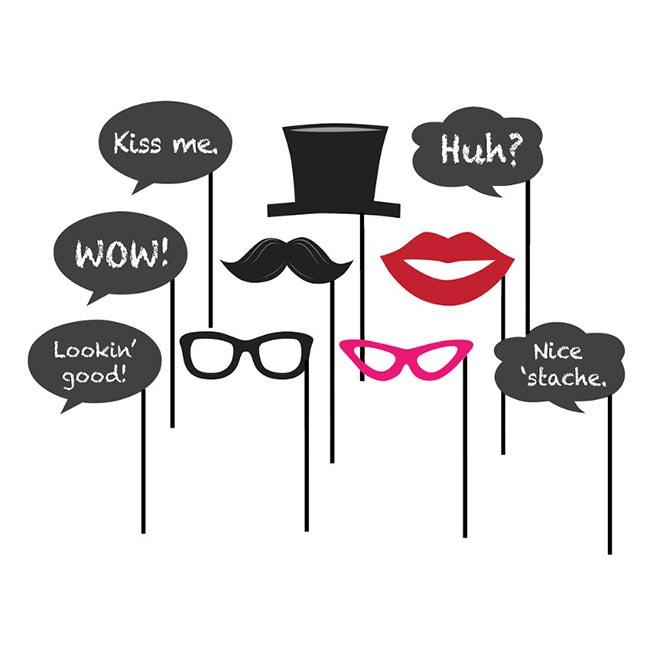 Sonstiges: Das Foto-Accessoire-Set kann teilweise individuell beschriftet werden und wird mit zwei Kreidestiften zur Beschriftung geliefert.
