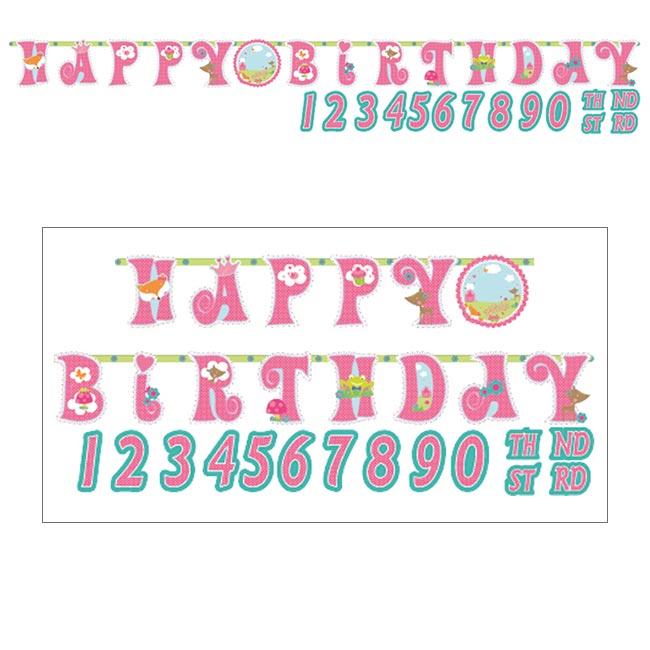 Die personalisierbare Girlande "Liebliche Prinzessin" hat eine Gesamtlänge von ca. 3,20 m und wird mit einer Schnur zur einfachen Befestigung an der Wand geliefert. Die Buchstaben haben eine Höhe von ca. 25,4 cm und bilden die Worte "Happy Birthday". Sie werden getrennt von einem Kreis, den Sie selbst bekleben können. Auf diese Weise können Sie die Girlande ganz nach Belieben anpassen. Im Lieferumfang sind nämlich 20 Zahlen (jeweils zwei Mal die Zahlen von 0-9) und vier Ordinalzeichen (th, rd, nd, st) enthalten. Diese können mit den mitgelieferten Aufklebern ganz einfach befestigt werden. Die Girlande besteht aus Pappe und ist einseitig bedruckt.