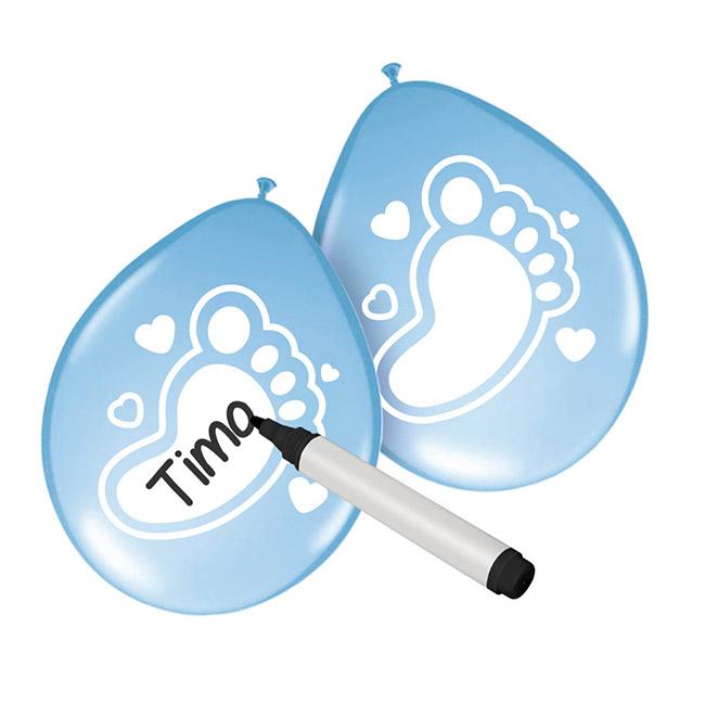 Artikel: Personalisierbare Luftballons "Niedliche Füße" 6er Pack-hellblau